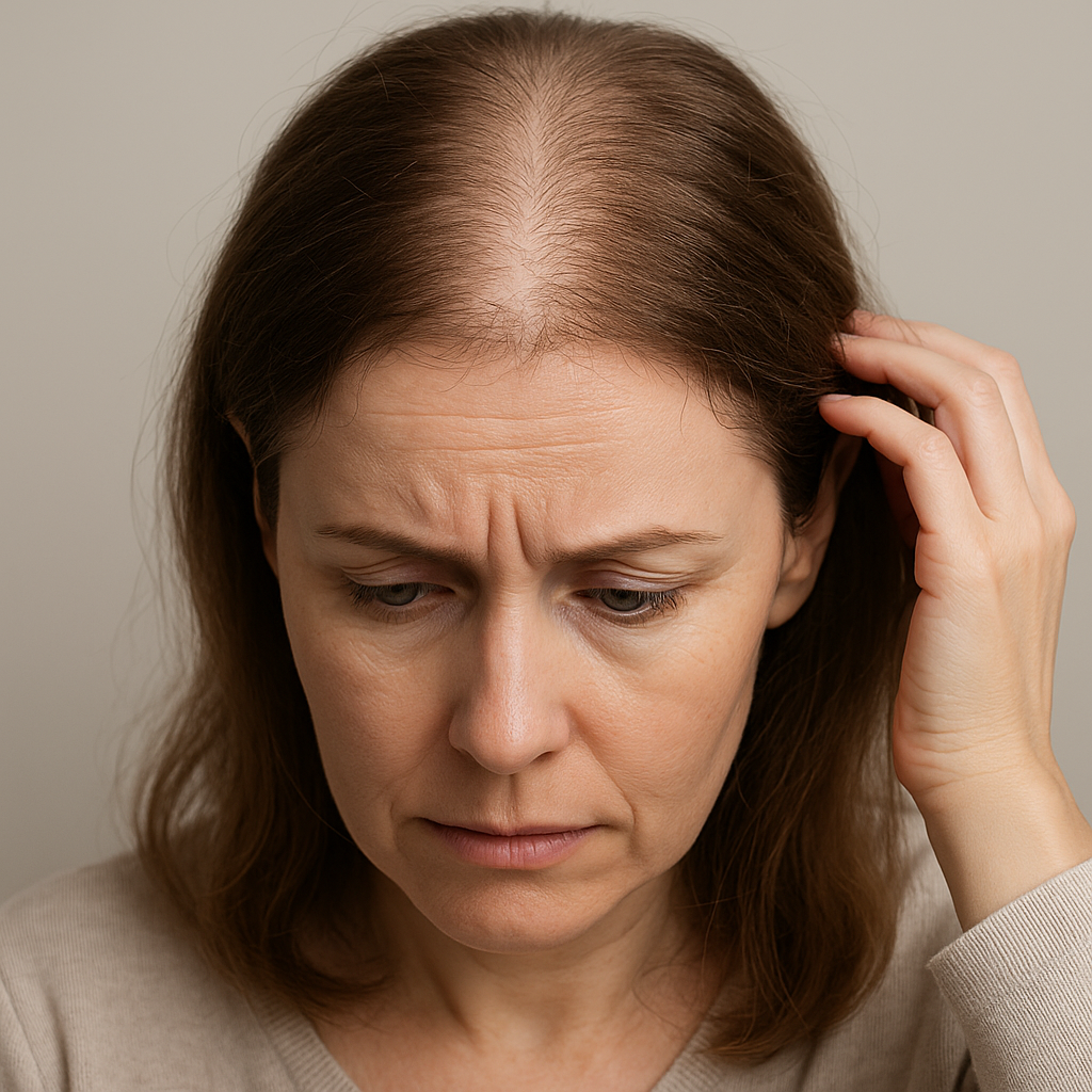 Chez la femme, l’alopécie ne se traduit pas par une perte frontale massive, mais par des signes plus subtils qu’il convient d’identifier :